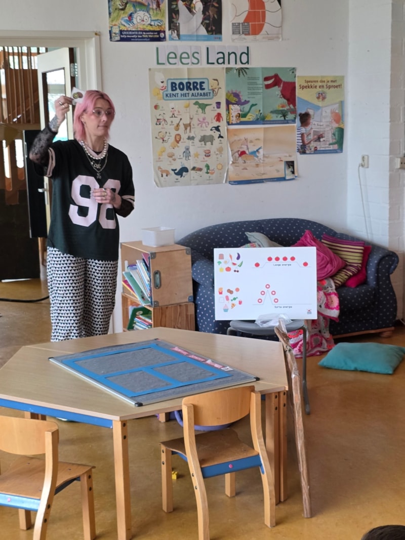 De leerlingen van groep 1/2/3 een leuke en leerzame gastles gehad over voeding.